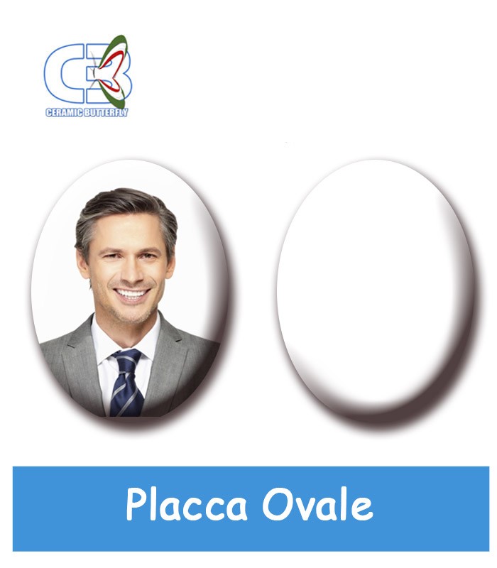La placca ovale 10x13cm è realizzata in porcellana. Come gli altri accessori di arte funeraria in catalogo garantisce inalterabilità nel tempo con una robusta resistenza agli agenti atmosferici (sole, pioggia, gelo, salsedine) ed all'inquinamento. Viene utilizzata in molti settori dell'arte e dell'industria per le possibilità di personalizzazione attraverso i processi di fotoceramica.